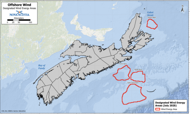 Nova Scotia in July 2025 designated four areas to develop wind power generation projects. The deal was announced as the U.S. offshore wind industry’s prospects are in disarray, amid the Trump administration’s determined roadblocks, and wind power companies pulling back amid uncertainty.