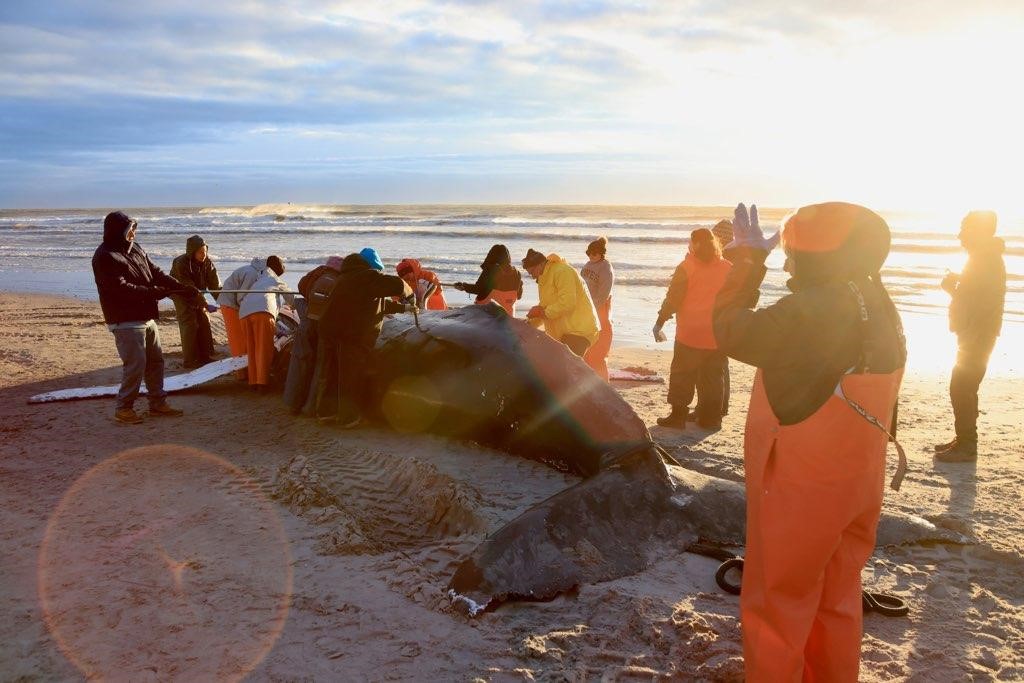 It is often difficult for investigators to determine a definitive cause of death when they examine stranded whales, said Wilkin. Adequately dissecting whales during necropsies requires heavy equipment – often a challenge on remote beach areas – and whale carcasses that are already decayed offer fewer clues to what happened to them, she said.