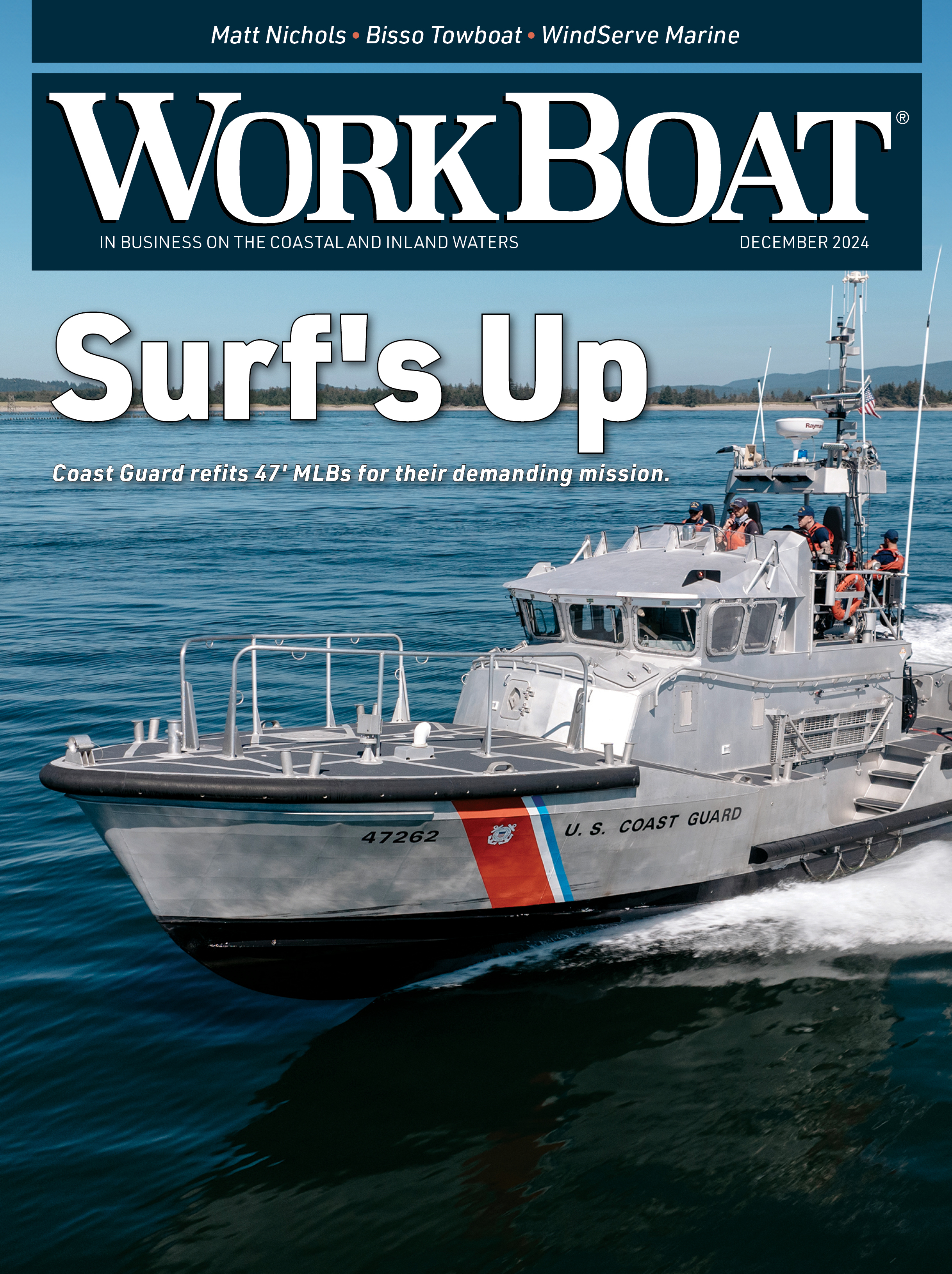 Cover Story: U.S. Coast Guard lifeboat pilots train in extreme conditions. • Onboard Bisso Towboat's newest tractor Tug. • The last Nichols brother retires from the yard bearing the family name. • The latest WindServe Marine CTV gets an upgrade. • Conrad Shipyard refits OSV into marine spaceport for Space Perspective • Brix Marine delivers 34' tour boats to Hawaii • Vessel Repair delivers 74' towboat to Golding Barge Line • Bollinger Shipyards lays keel for newest vessel in United Launch Alliance's fleet • St. Johns Ship Building to construct two 180' spud barges for Mobro Marine • Suderman & Young wants to build a zero-emission, battery electric 98' tug to operate in Port of Corpus Christi...and More!