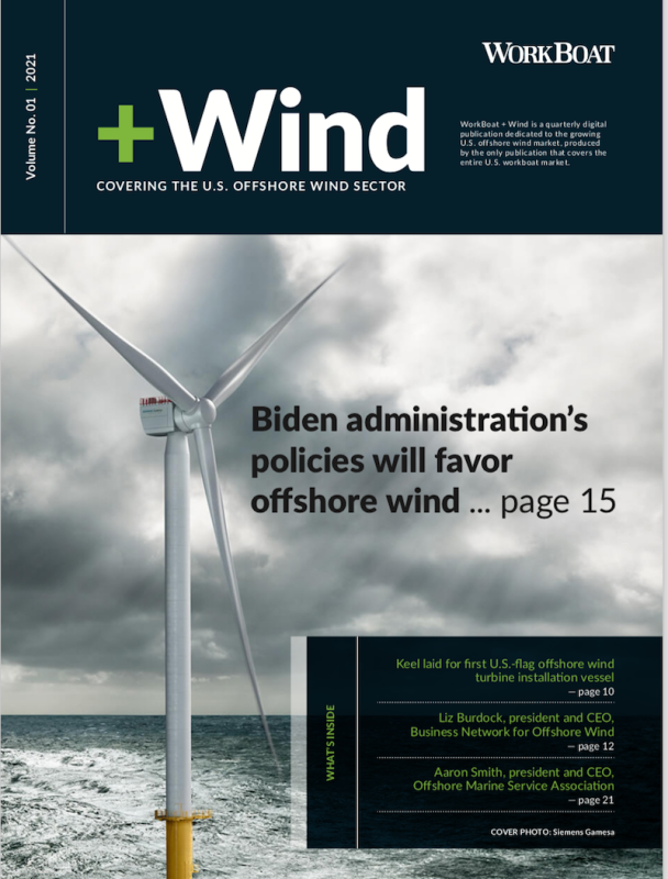 “WorkBoat has been steadily covering the emergence of offshore wind in both our magazine and digital platforms for years, but the launch of WorkBoat + Wind alongside such a respected partner that is solely focused on the development of the U.S. offshore wind industry and advancement of its supply chain really shows the seriousness with which we view this opportunity for our customers,” said Publisher and Group Vice President Bob Callahan.